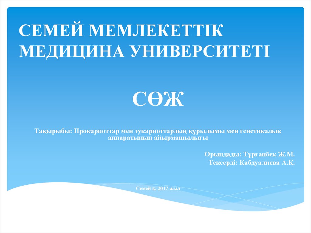 СӨЖТақырыбы: Прокариоттар мен эукариоттардың құрылымы мен генетикалық