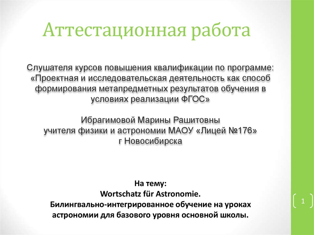 Аттестационная работа. Билингвально-интегрированное обучение на уроках астрономии для базового уровня основной школы
