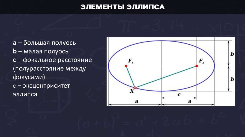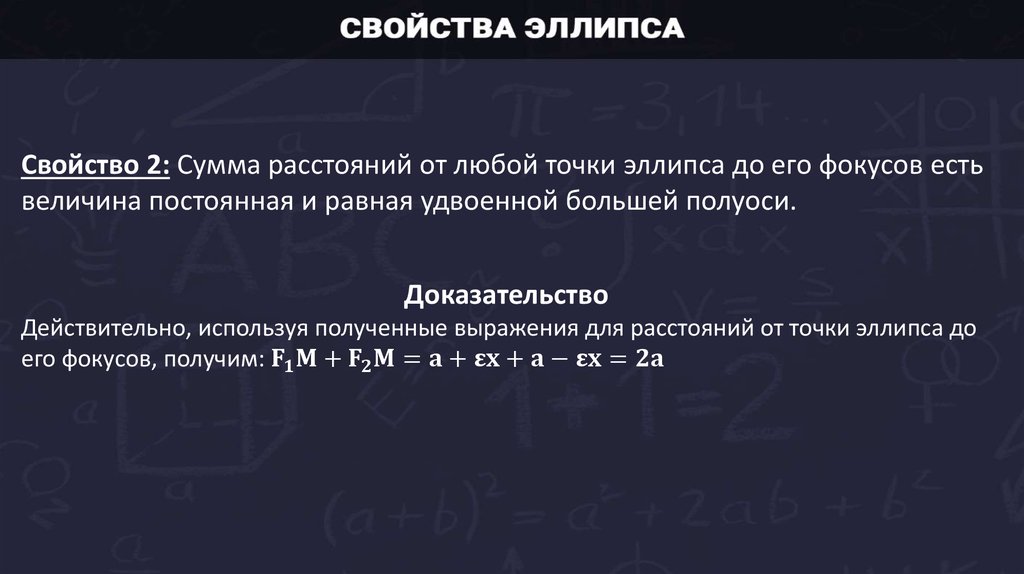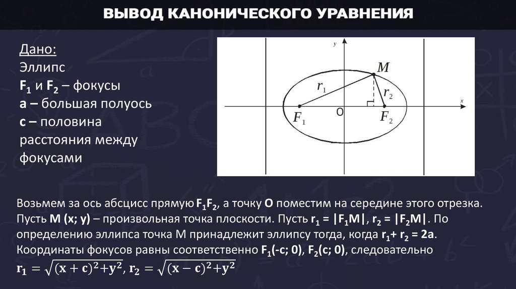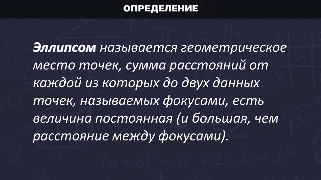 Эллипсом называется геометрическоеместо точек, сумма расстояний от