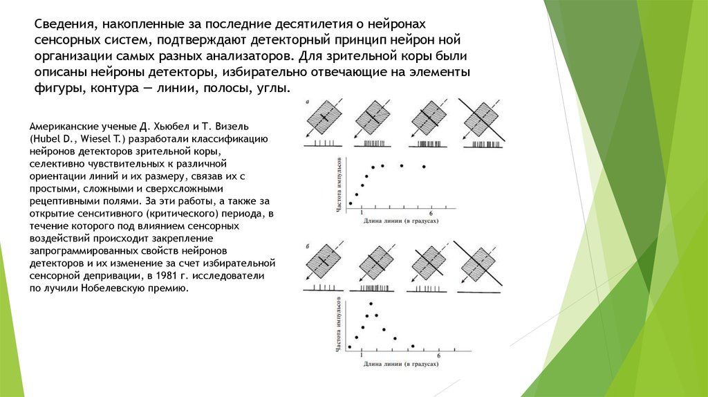 Сведения, накопленные за последние десятилетия о нейронахсенсорных систем, подтверждают детекторный принцип нейрон ной