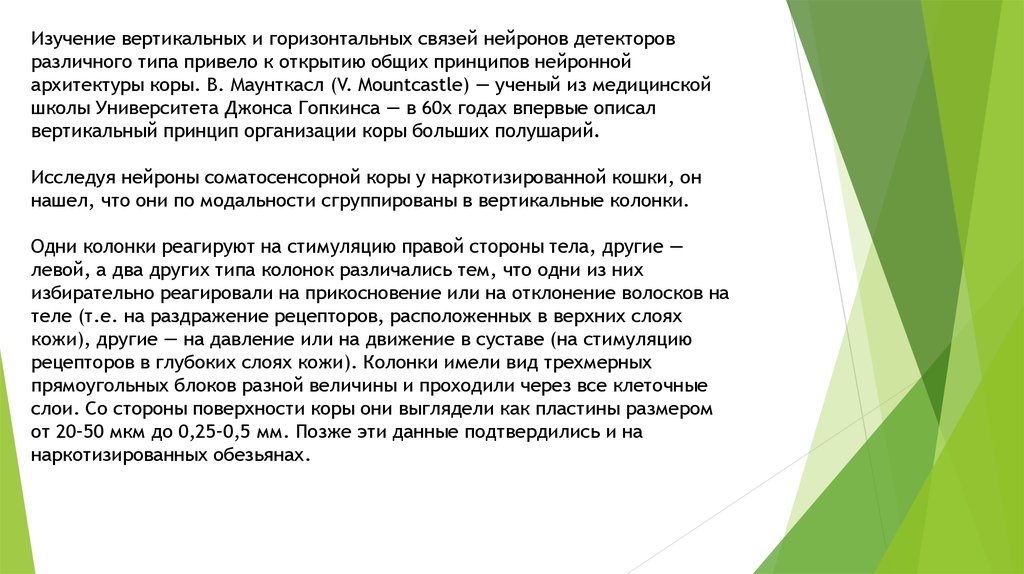 архитектуры коры. В. Маунткасл (V. Mountcastle) — ученый из медицинской