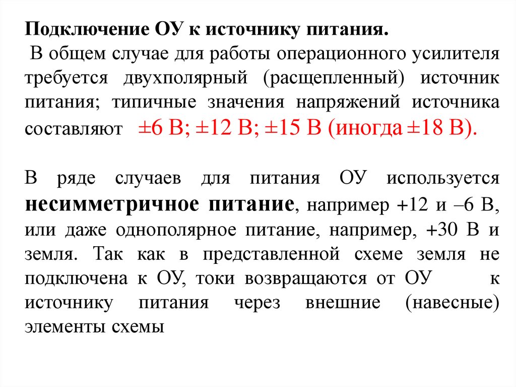 Подключение ОУ к источнику питания.В общем случае для работы операционного усилителя
