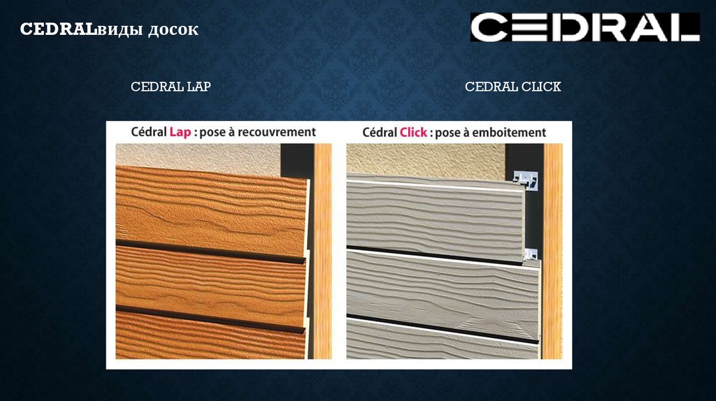 CEDRALвиды досокCEDRAL CLICK горизонтальный и вертикальный монтаж