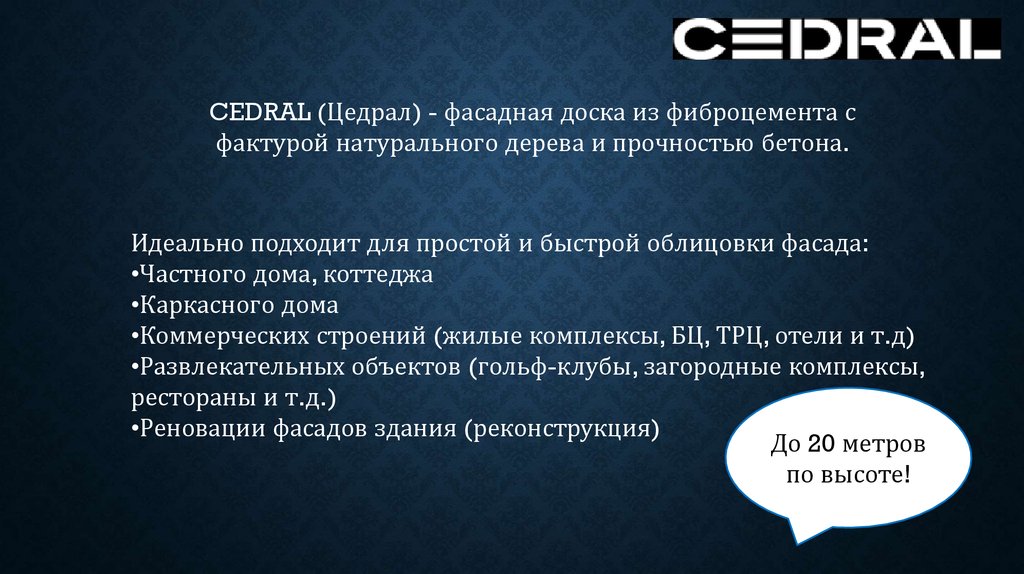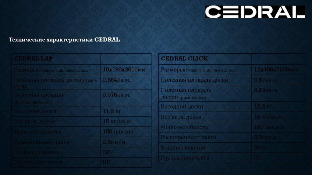 ЧЕМ CEDRAL (Цедрал) ОТЛИЧАЕТСЯ ОТ ДРУГИХ МАТЕРИАЛОВ?•Всегда держит форму: не «ведет» и не