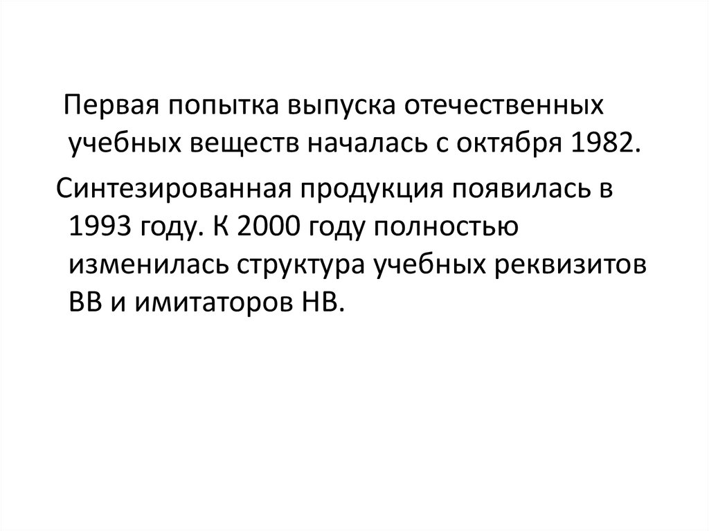 Первая попытка выпуска отечественныхучебных веществ началась с октября 1982.