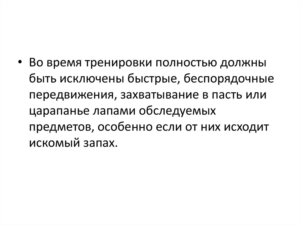 • Во время тренировки полностью должныбыть исключены быстрые, беспорядочные