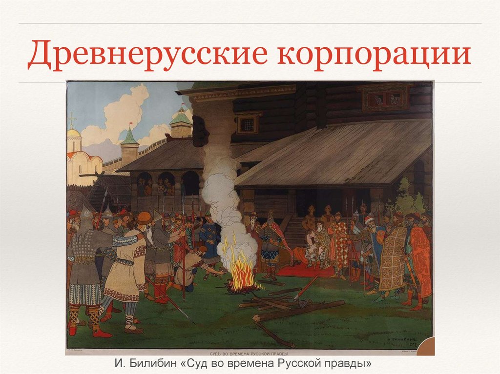Древнерусские корпорацииИ. Билибин «Суд во времена Русской правды»