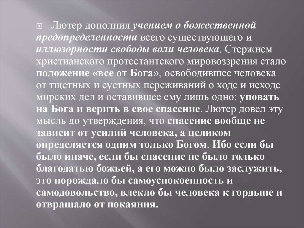 Лютер дополнил учением о божественнойпредопределенности всего существующего и