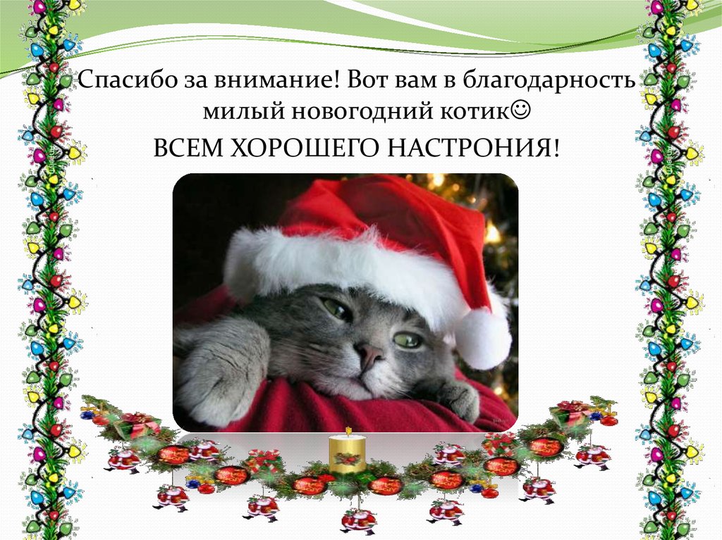 Спасибо за внимание! Вот вам в благодарностьмилый новогодний котик