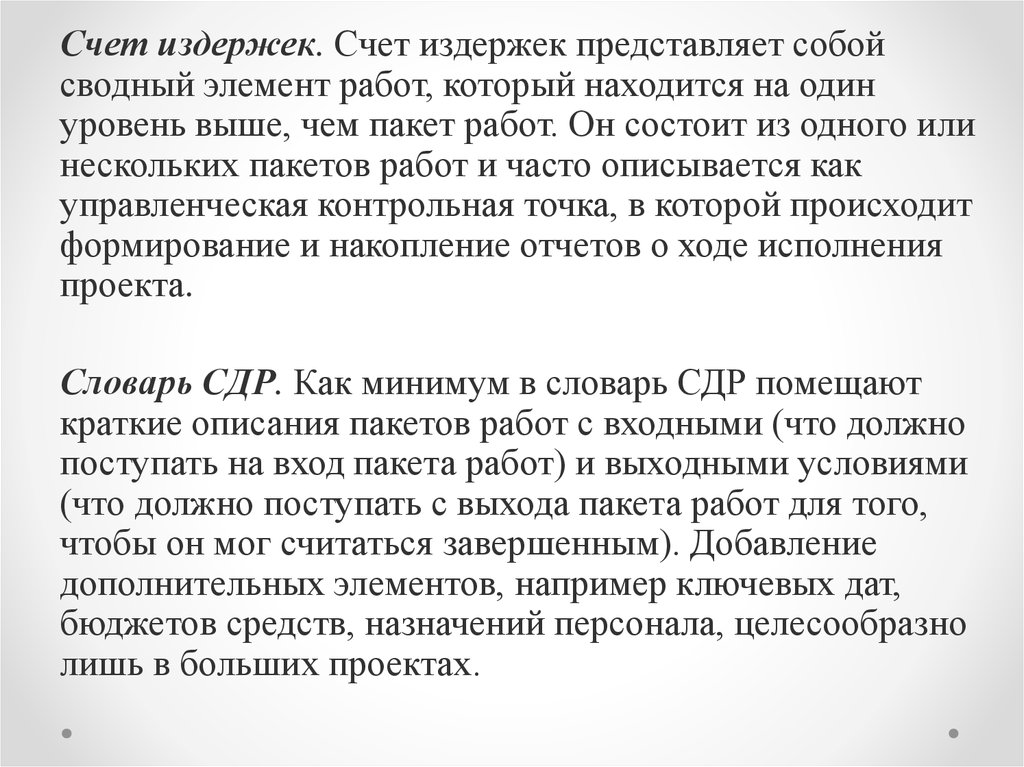 Пакет работ. Пакет включает в себя элементыработ, расположенные на низшем уровне СДР. Мы