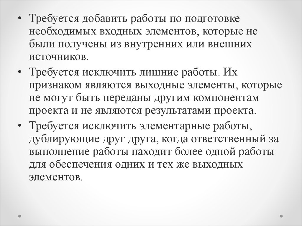 работ проекта, которые должны быть выполнены.