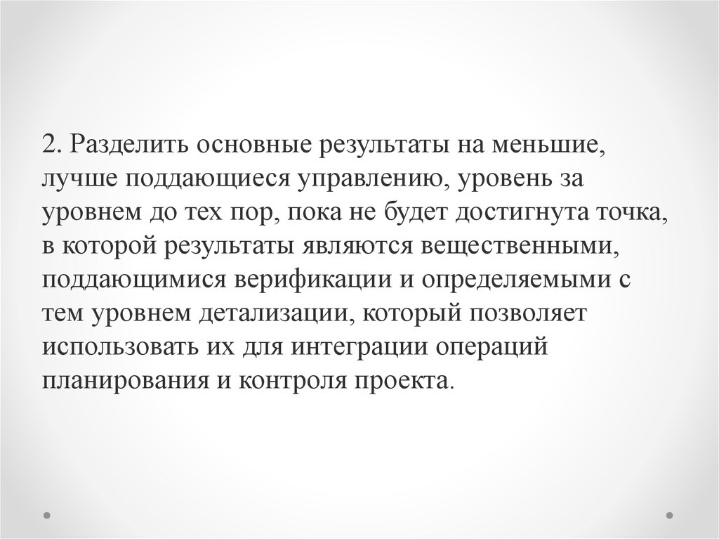 2. Разделить основные результаты на меньшие,лучше поддающиеся управлению, уровень за