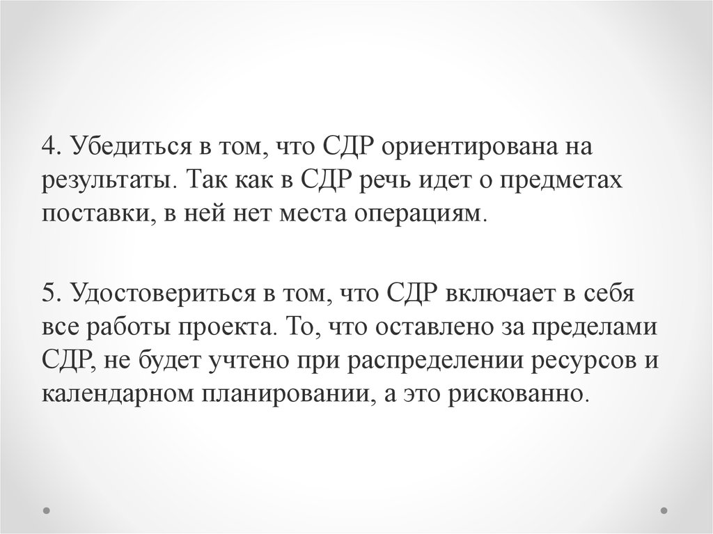 4. Убедиться в том, что СДР ориентирована нарезультаты. Так как в СДР речь идет о предметах