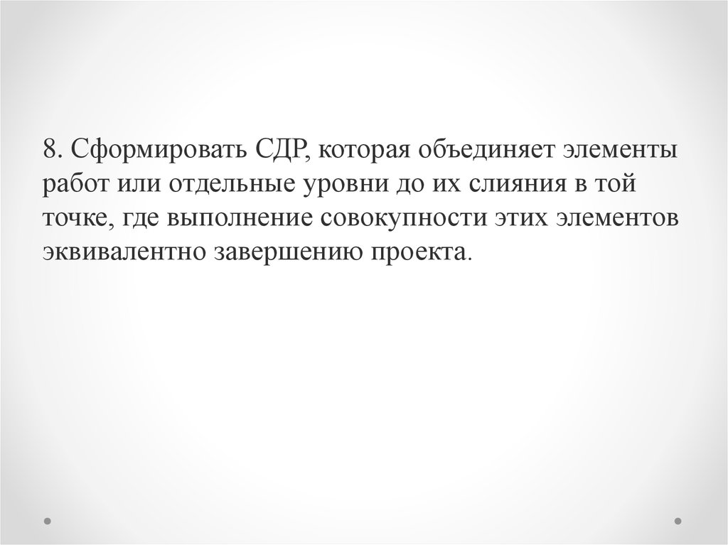 8. Сформировать СДР, которая объединяет элементыработ или отдельные уровни до их слияния в той