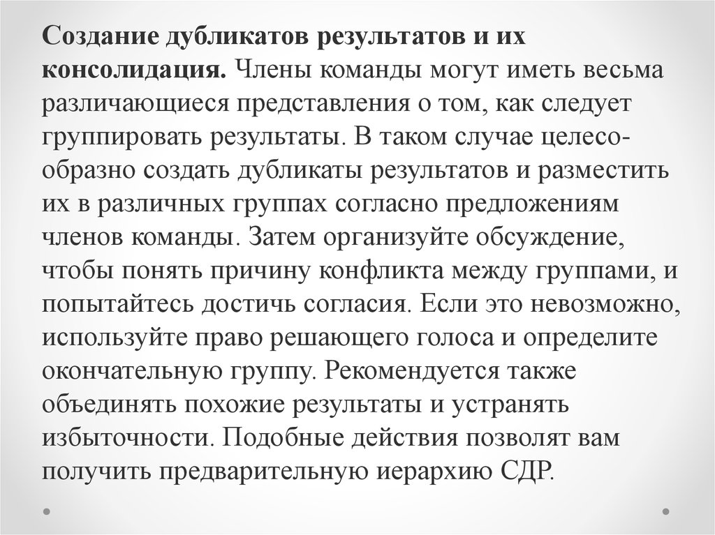 Создание дубликатов результатов и ихконсолидация. Члены команды могут иметь весьма