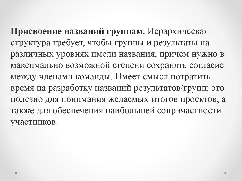 Присвоение названий группам. Иерархическаяструктура требует, чтобы группы и результаты на