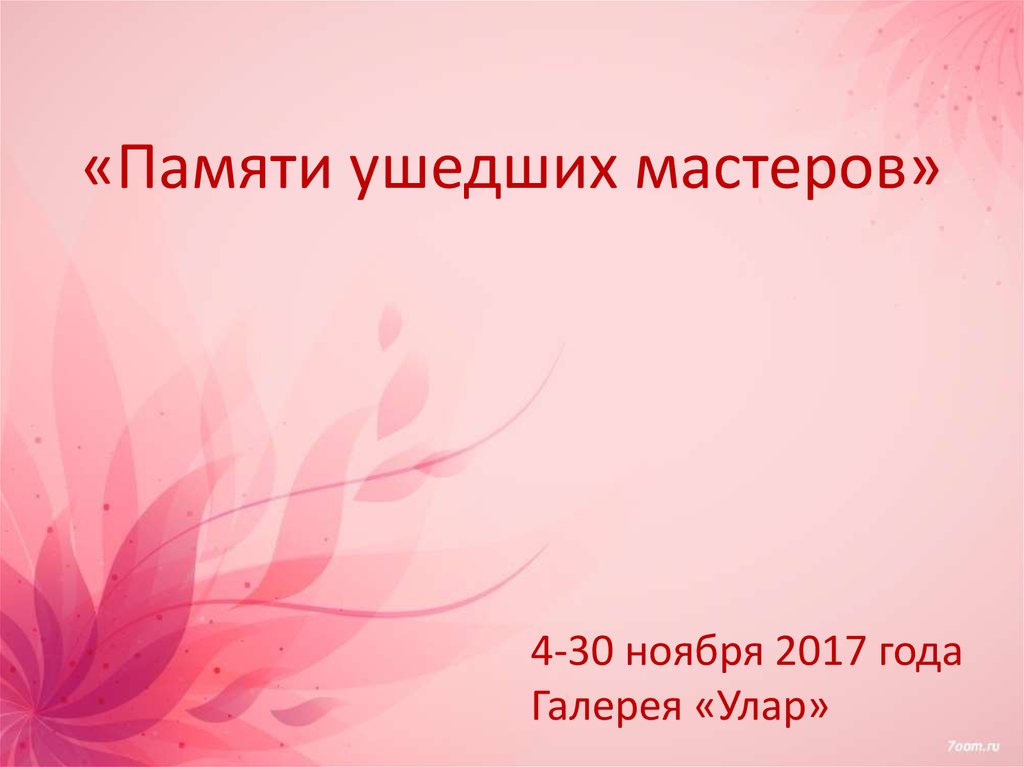 «Памяти ушедших мастеров»4-30 ноября 2017 года