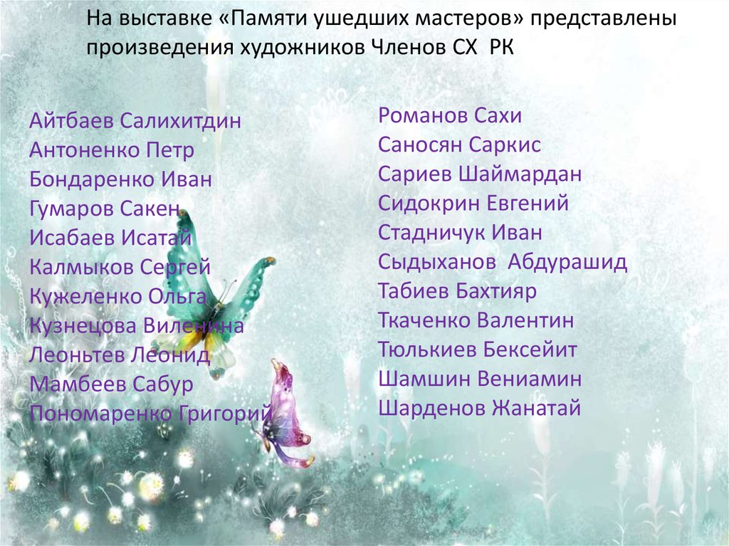 На выставке «Памяти ушедших мастеров» представленыпроизведения художников Членов СХ РК