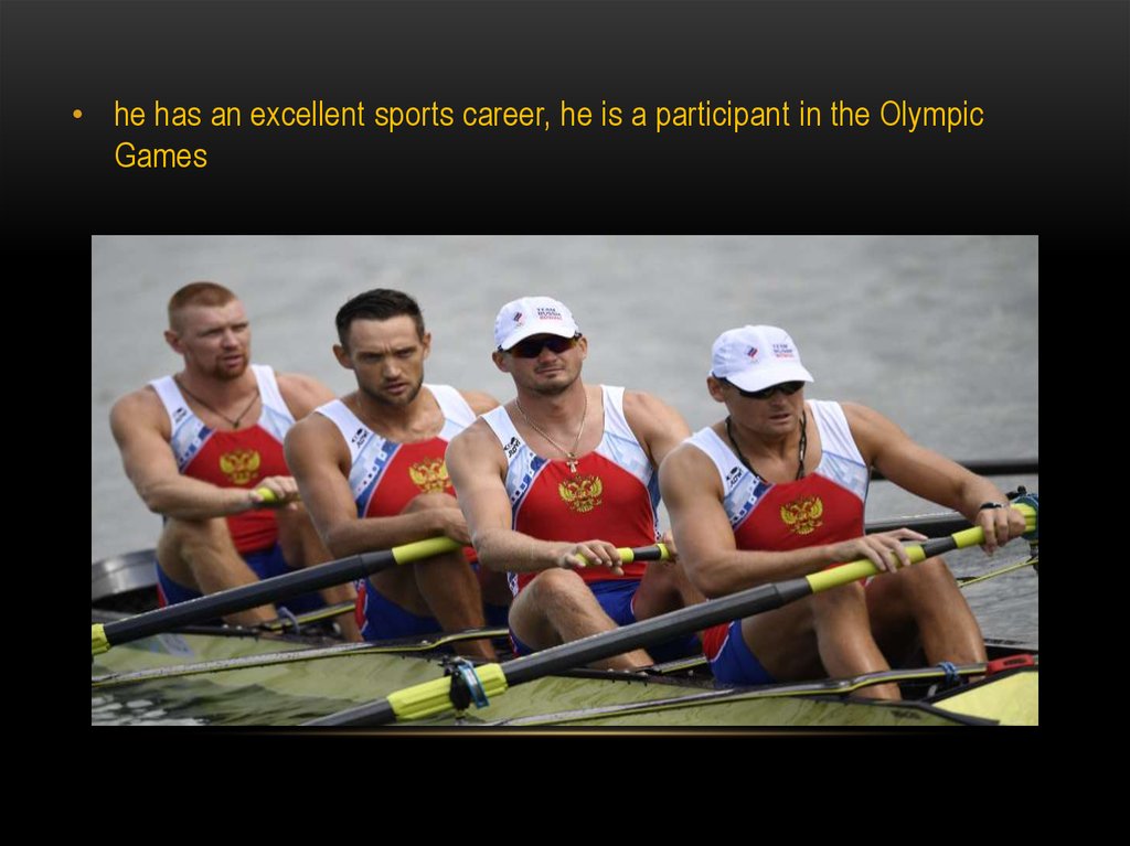 • he has an excellent sports career, he is a participant in the OlympicGames