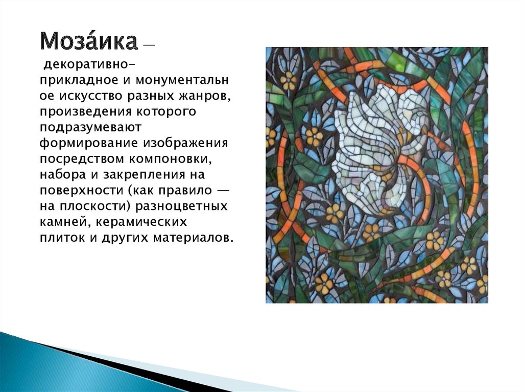 Моза́ика —декоративноприкладное и монументальн