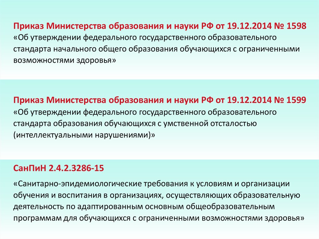 Приказ Министерства образования и науки РФ от 19.12.2014 № 1598«Об утверждении федерального государственного образовательного