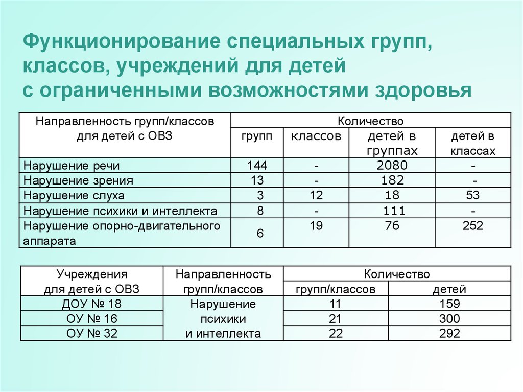 Функционирование специальных групп,классов, учреждений для детей