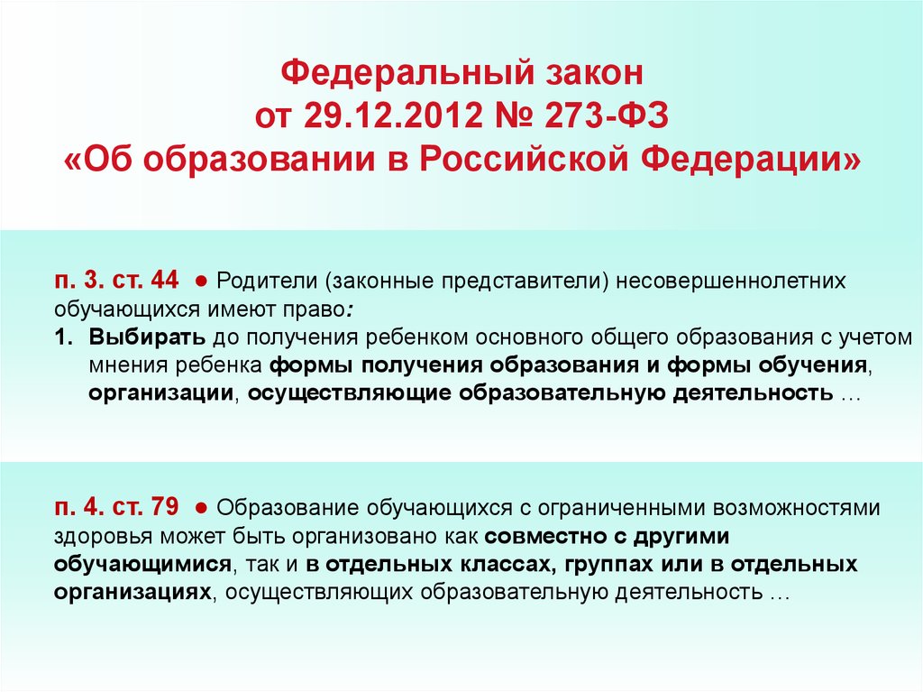 п. 3. ст. 44 ● Родители (законные представители) несовершеннолетних