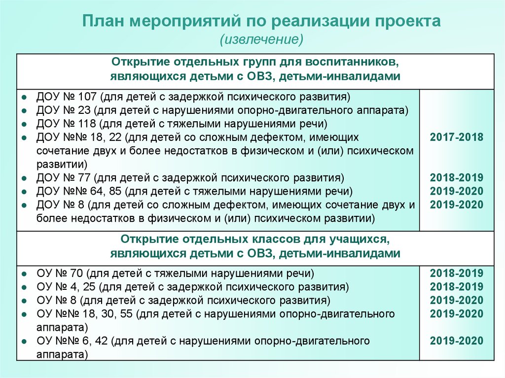 План мероприятий по реализации проекта(извлечение)