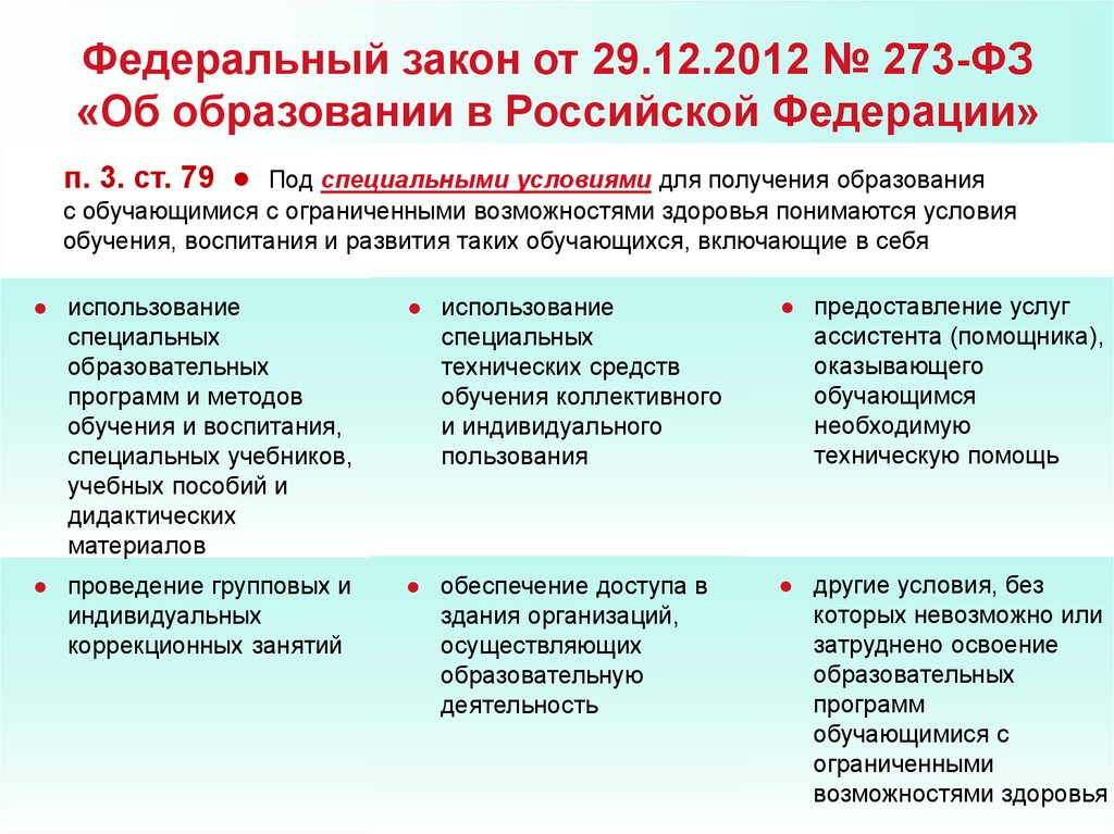 п. 4. ст. 79 ● Образование обучающихся с ограниченными возможностями