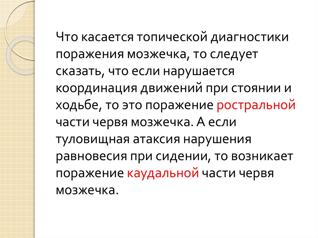 Что касается топической диагностикипоражения мозжечка, то следует