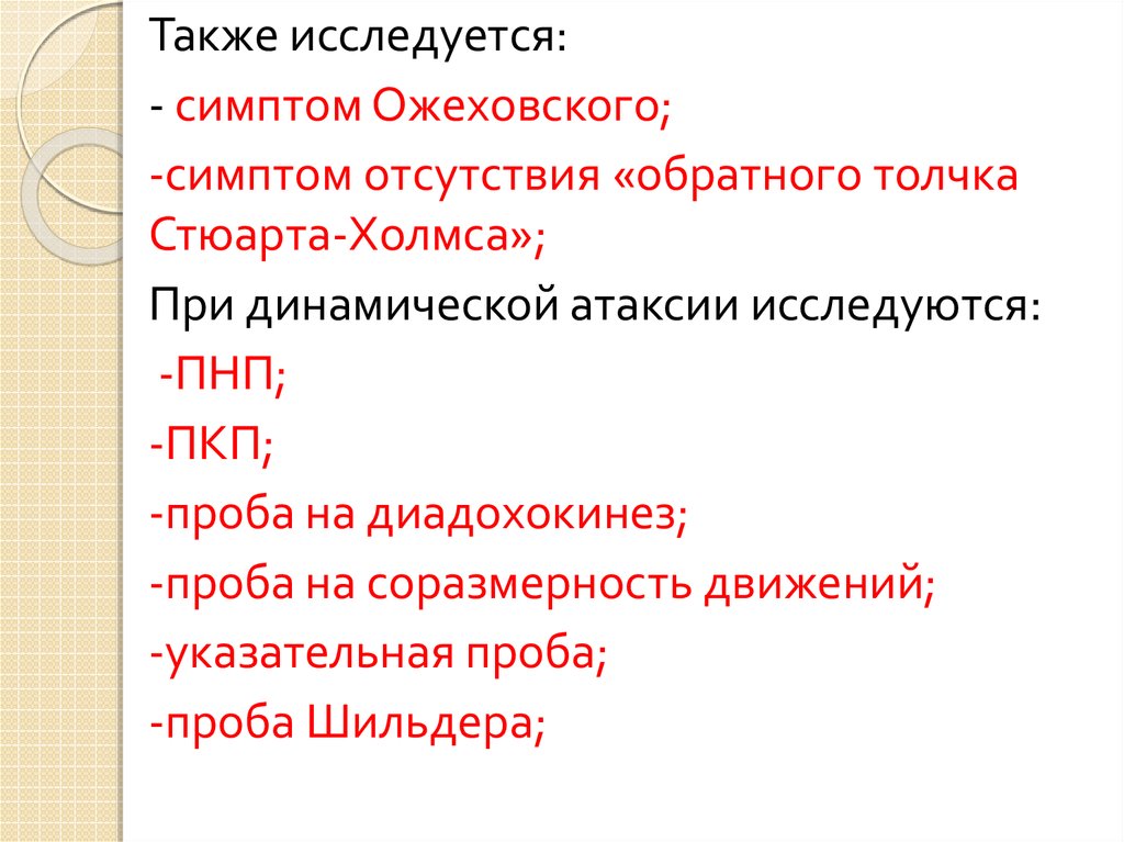 Также исследуется:- симптом Ожеховского;