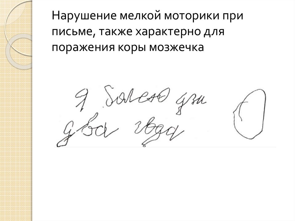 Нарушение мелкой моторики приписьме, также характерно для