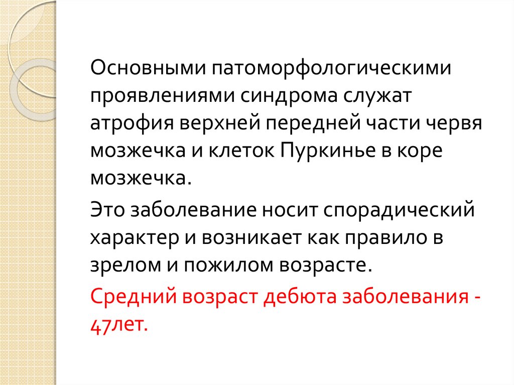 Средний возраст дебюта заболевания 47лет.