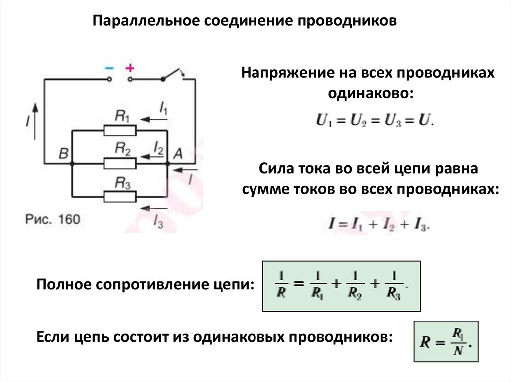 Параллельное соединение проводниковНапряжение на всех проводниках