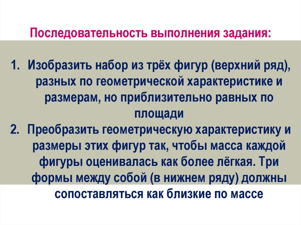 Последовательность выполнения задания:1. Изобразить набор из трёх фигур (верхний ряд),