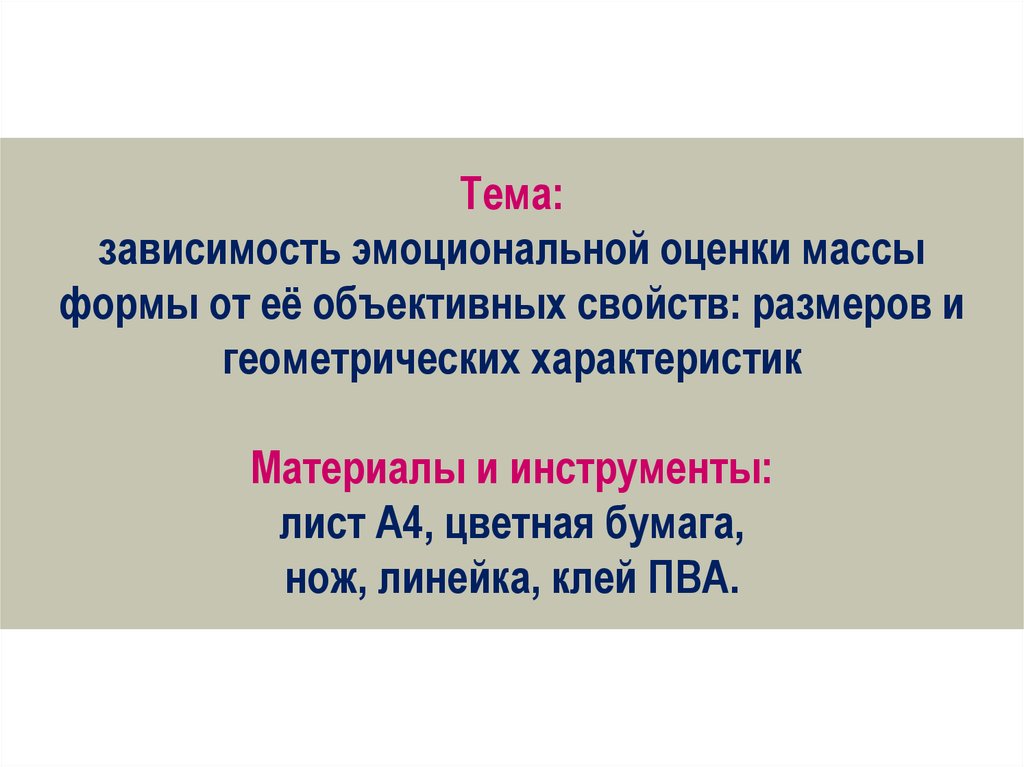 Тема:зависимость эмоциональной оценки массы