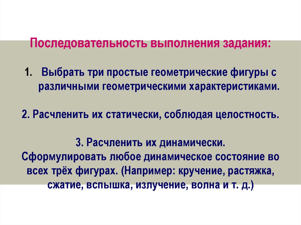 Последовательность выполнения задания:1. Выбрать 3 вида простых геометрических фигур.
