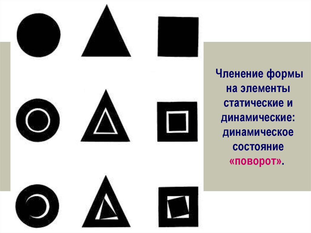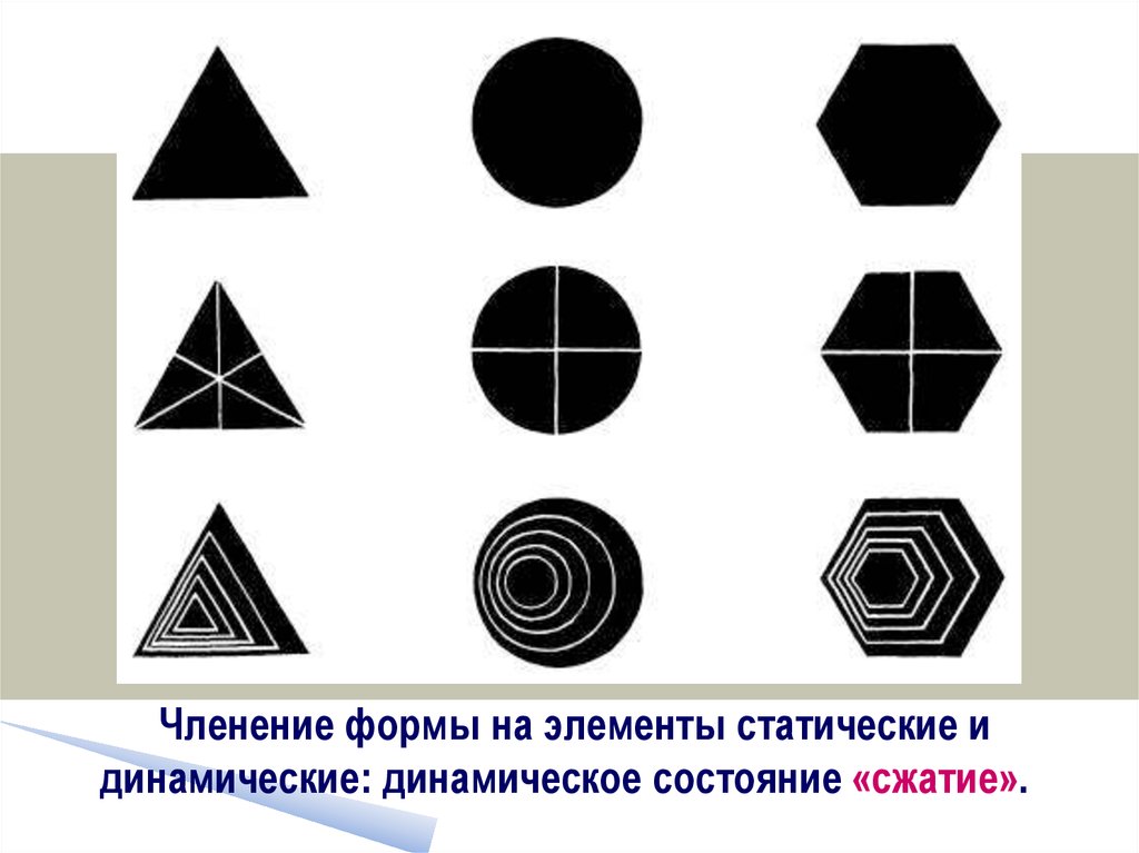 Членение формы на элементы статические идинамические: динамическое состояние «сжатие».
