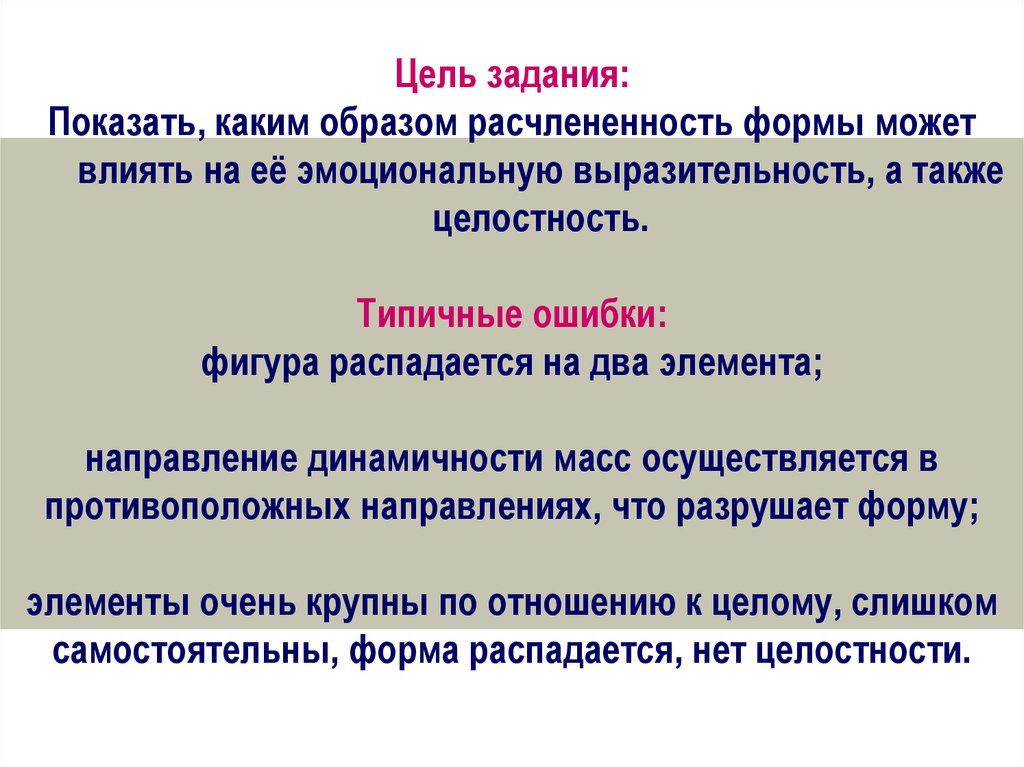 Цель задания:Показать, каким образом расчлененность формы может