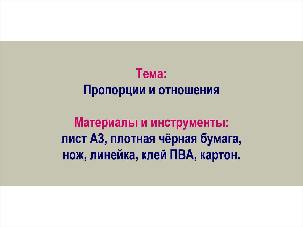 Тема:Пропорции и отношения