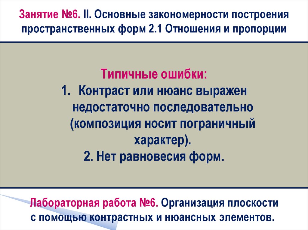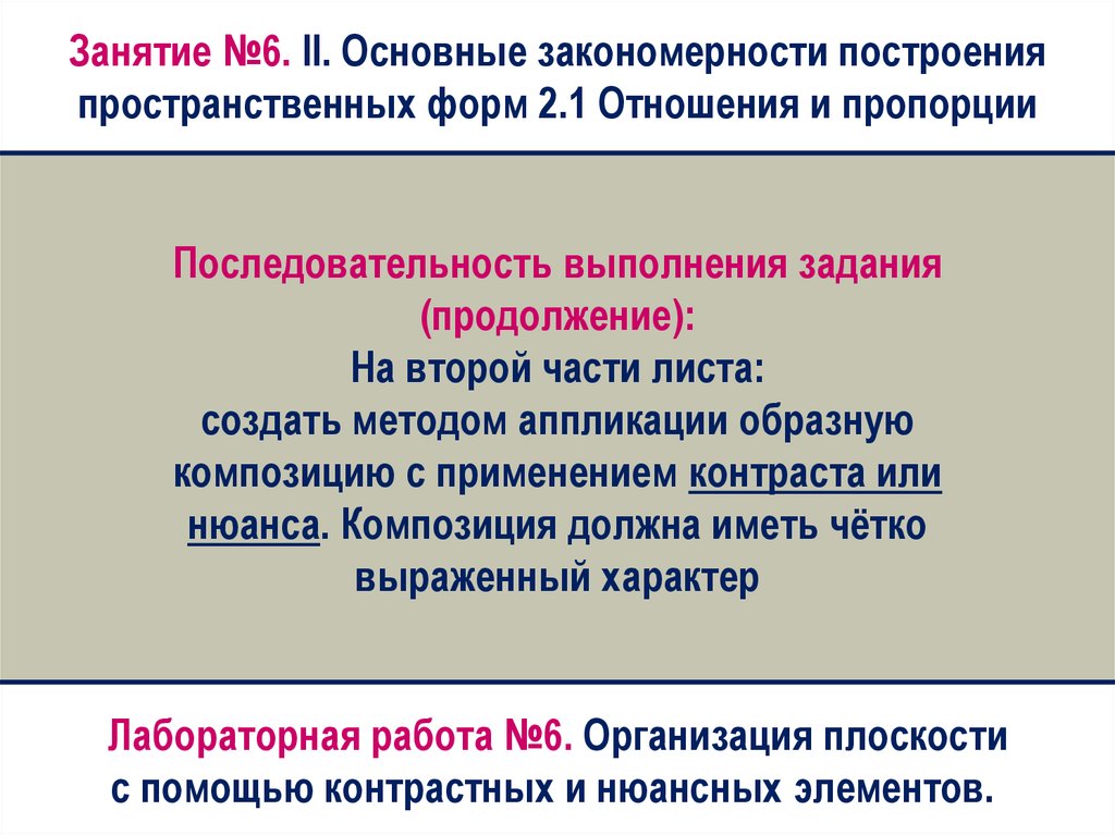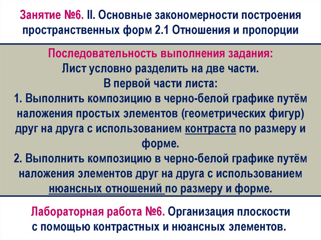 Занятие №6. II. Основные закономерности построенияпространственных форм 2.1 Отношения и пропорции