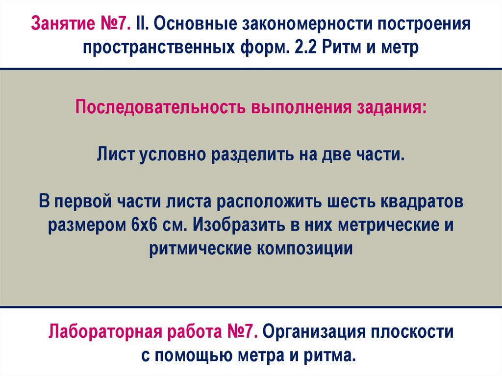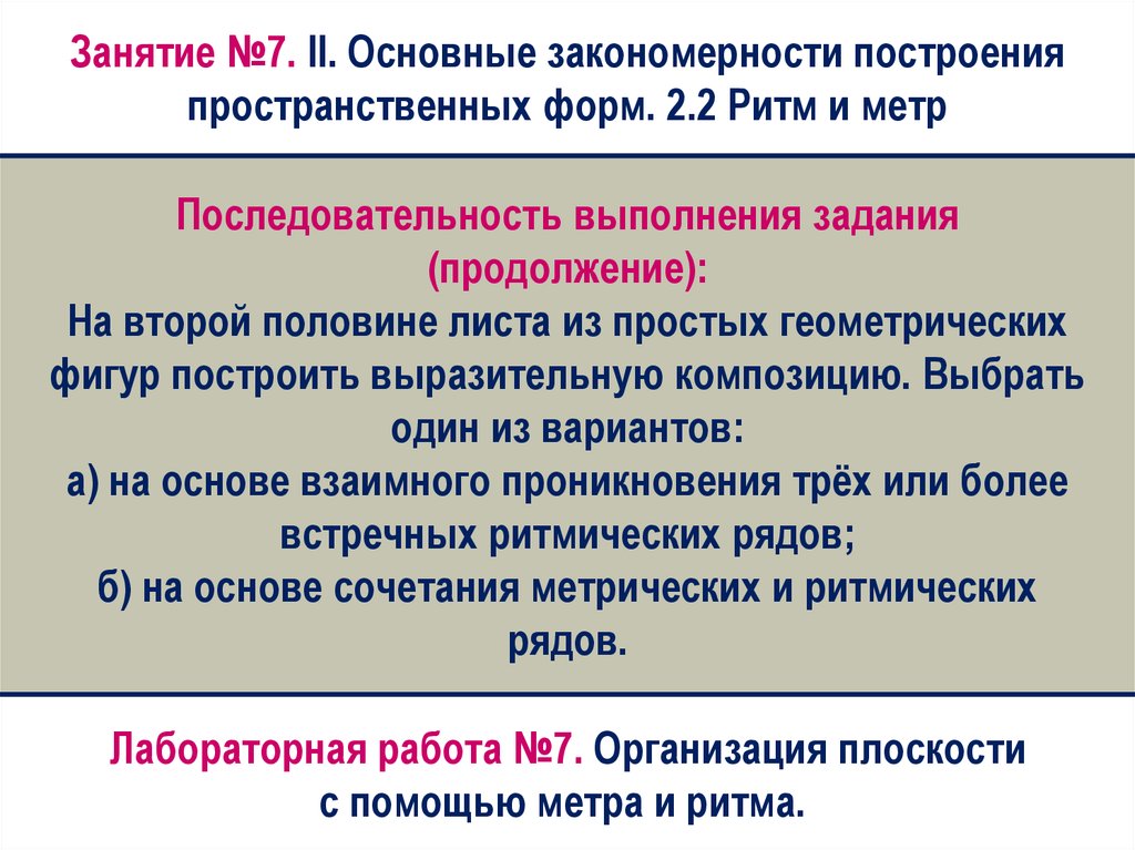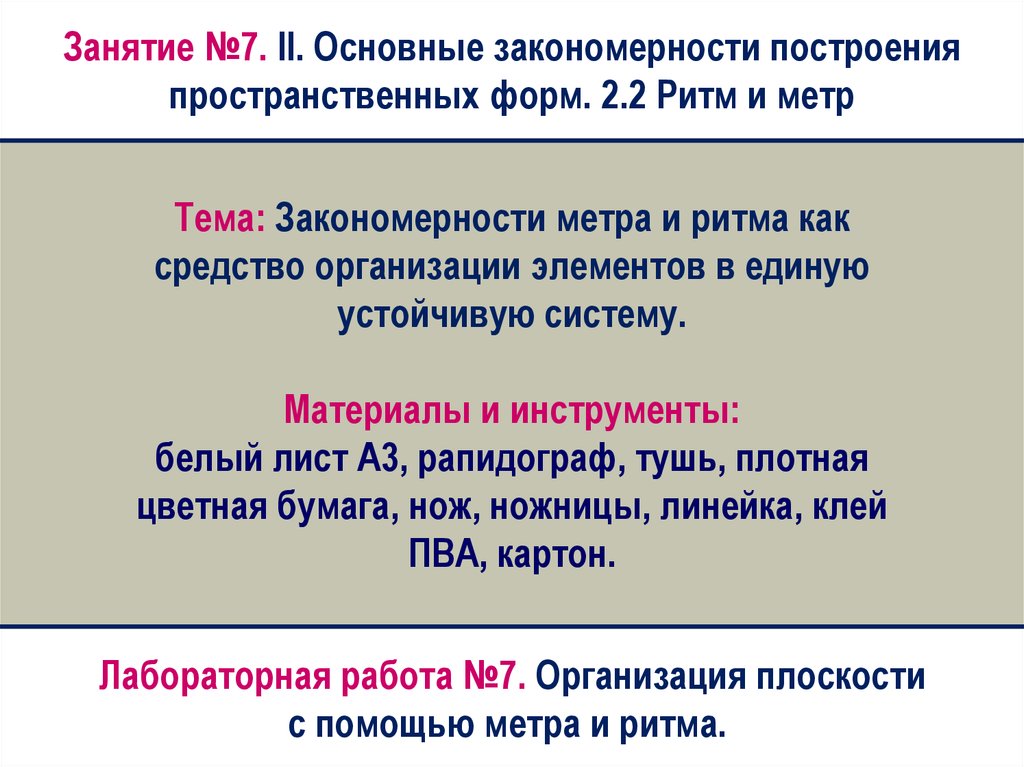 Занятие №7. II. Основные закономерности построенияпространственных форм. 2.2 Ритм и метр