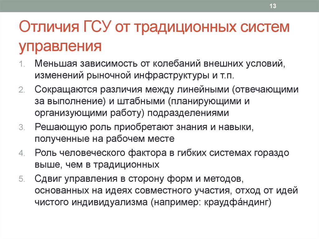 13. Отличия ГСУ от традиционных систем управления