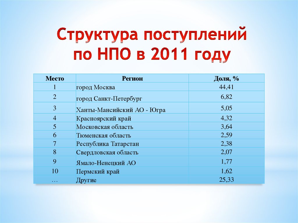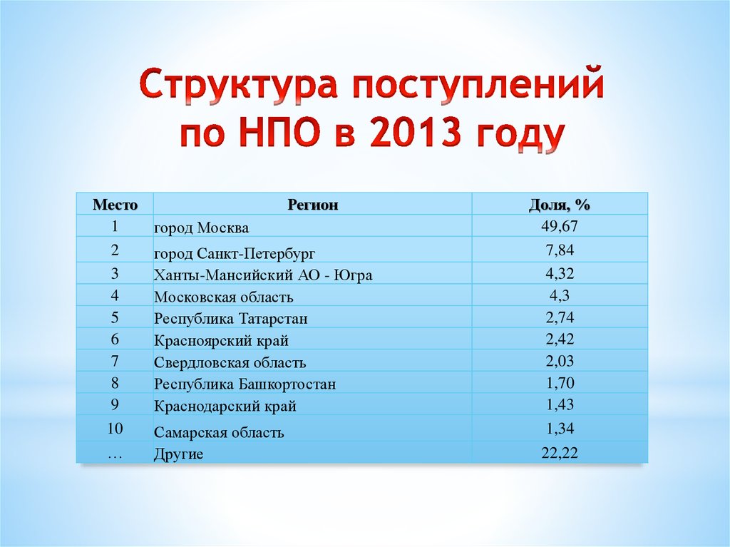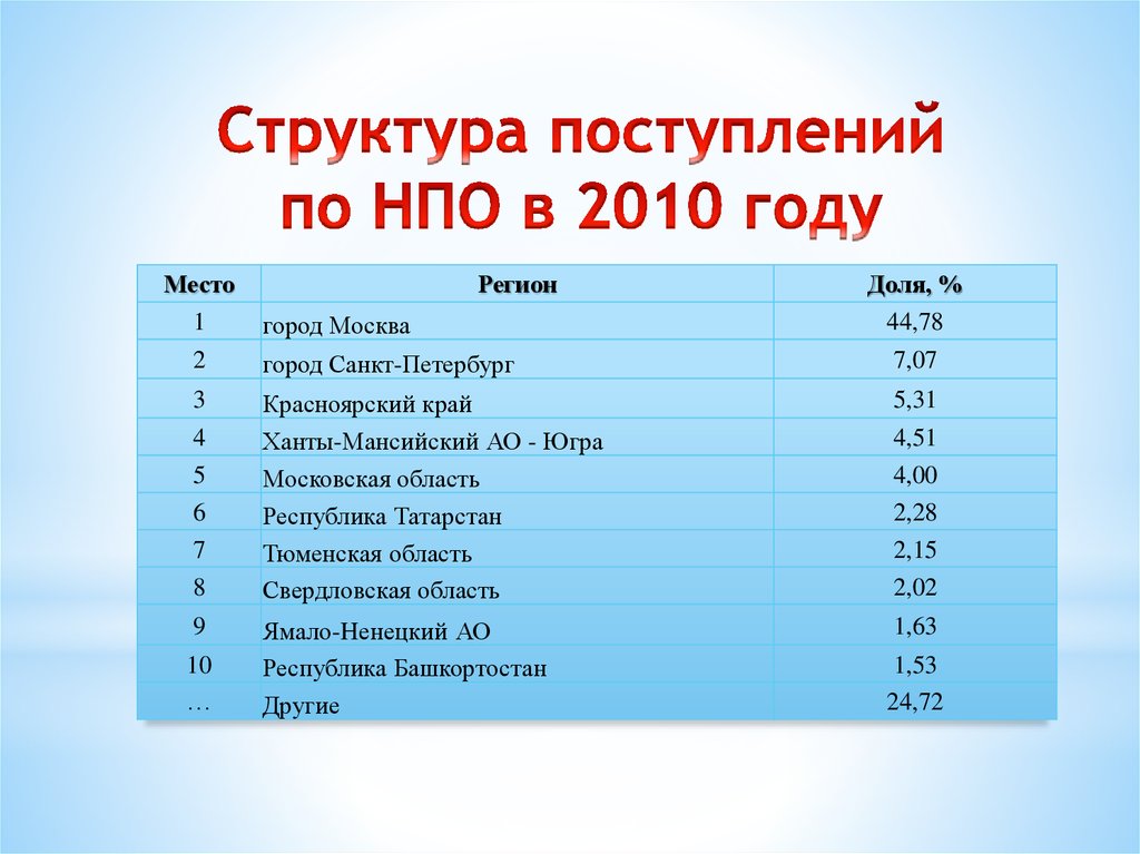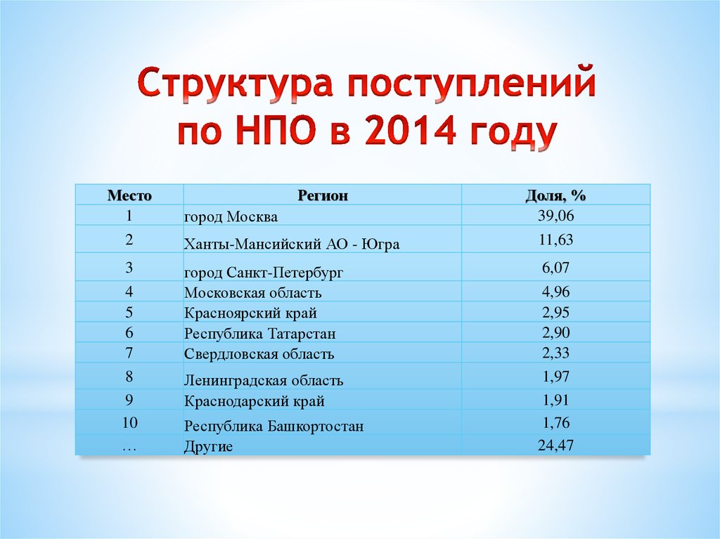 Распределение поступлений по налогу на прибыль по территориям Российской Федерации в 2010-2014 годах