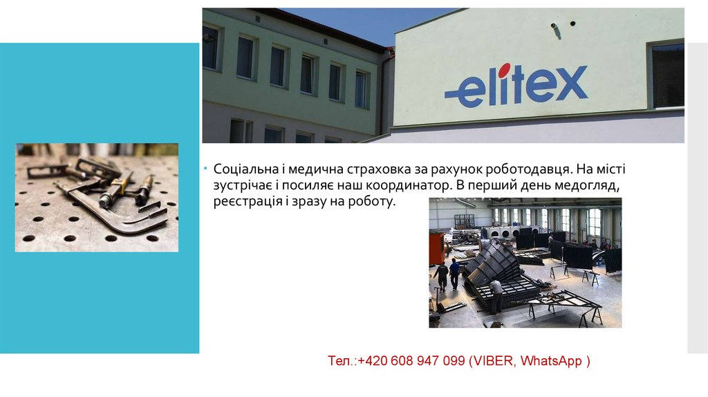 Соціальна і медична страховка за рахунок роботодавця. На містізустрічає і посиляє наш координатор. В перший день медогляд,