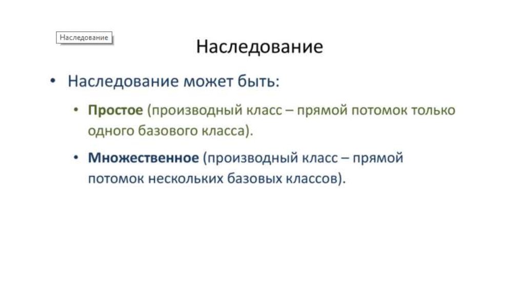 Наследование является мощнейшим инструментом ООП иприменяется для следующих взаимосвязанных целей: