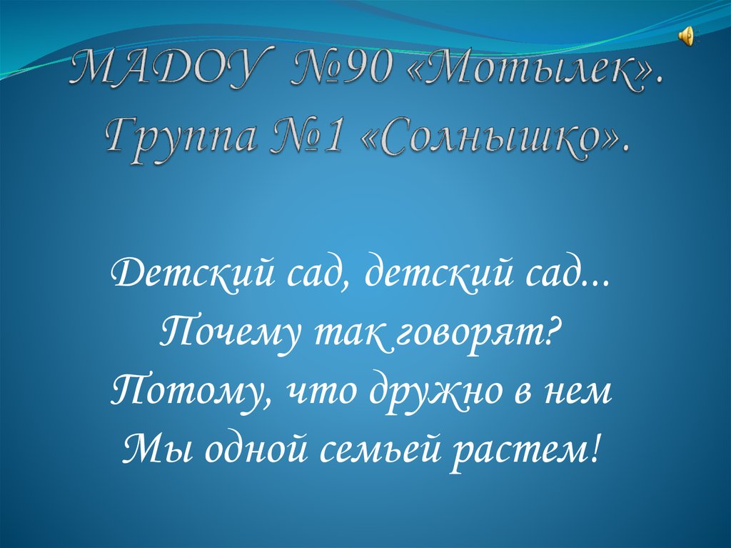 МАДОУ №90 «Мотылек». Группа №1 «Солнышко»