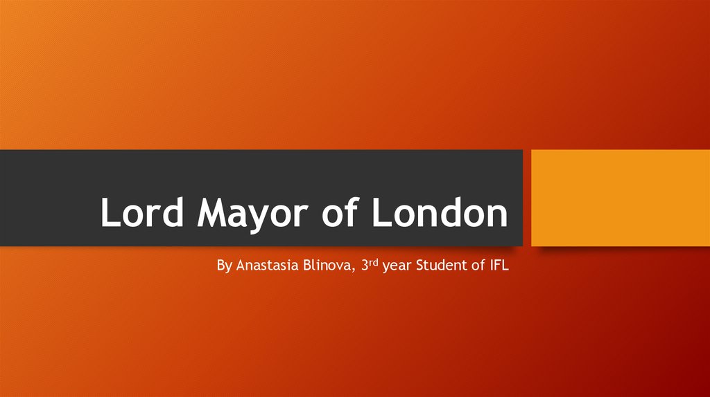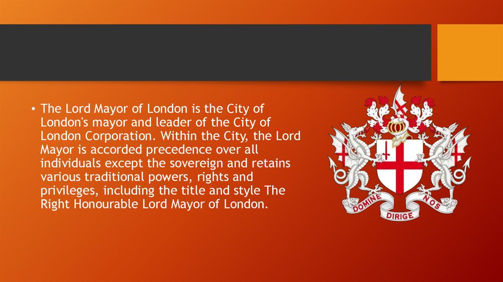 • The Lord Mayor of London is the City ofLondon's mayor and leader of the City of
