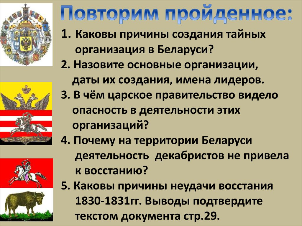 1. Каковы причины создания тайныхорганизация в Беларуси?