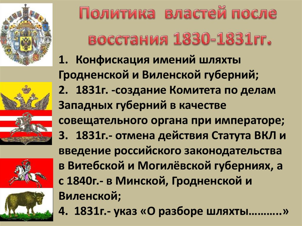 1. Конфискация имений шляхтыГродненской и Виленской губерний;